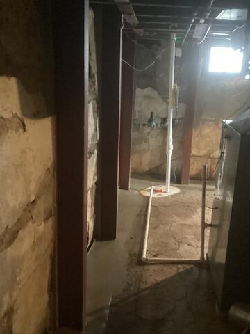 Stabilized and waterproofed is how Florence can describe her basement! After struggling with water and a bowing wall in this 200-year-old basement, she finally had enough! Frank's Basement Systems helped her achieve the clean, dry basement she wanted by installing several I-Beams to stabilize the walls, the FlowGuard drainage system, and a SuperSump to help keep the basement dry!